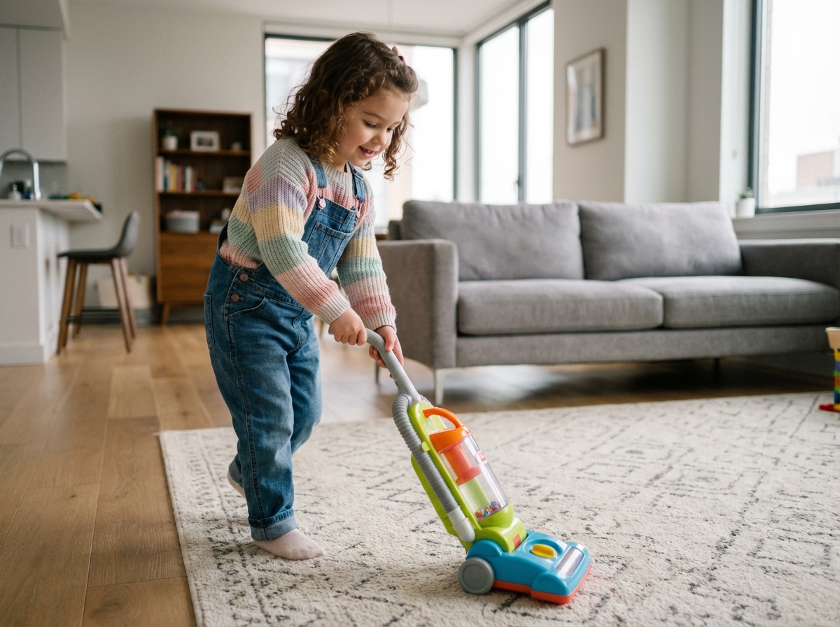 Pourquoi les enfants adorent imiter le ménage avec de vrais jouets